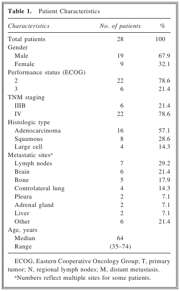 Non–Small-Cell Lung Cancer Patients with Low Performance Status: study on 28 patients